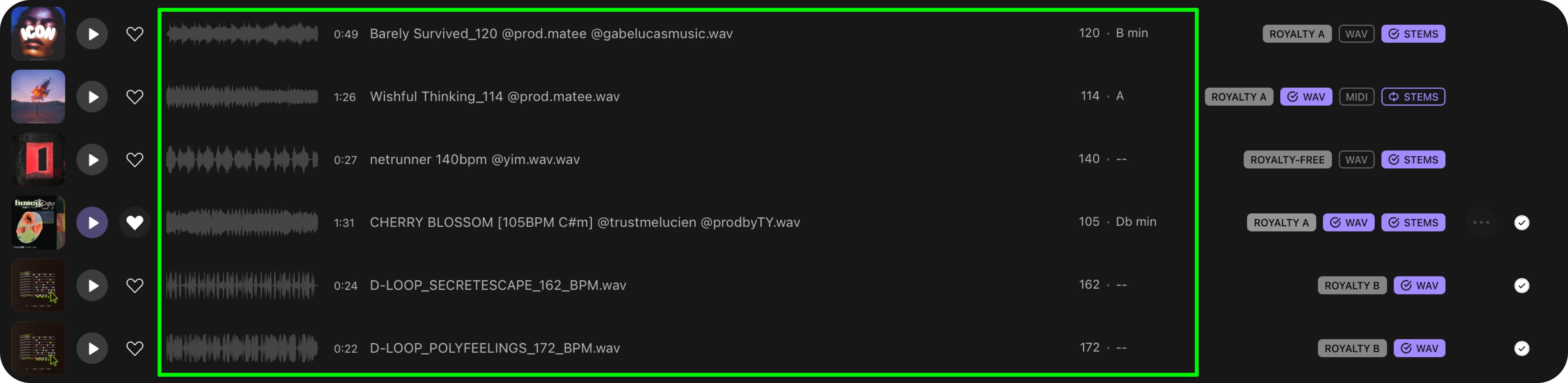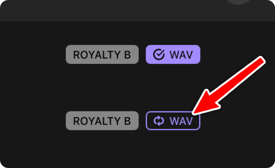 Before dragging the sample into your project, make sure it’s both downloaded and synced to your computer. To confirm it’s synced, look for a checkmark on the icon. If you see a refresh icon instead, click it to start the sync process.