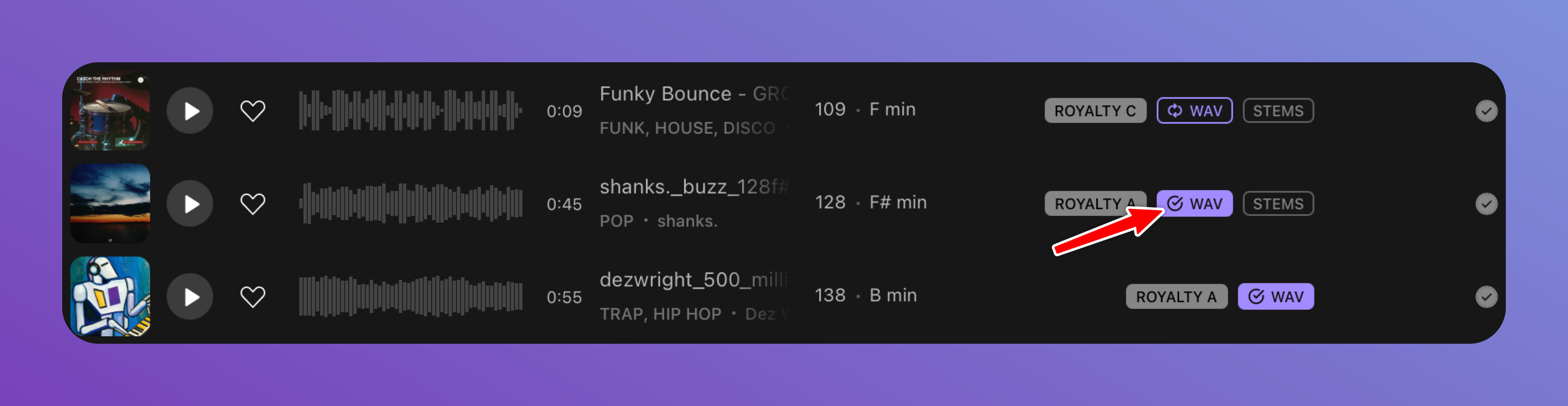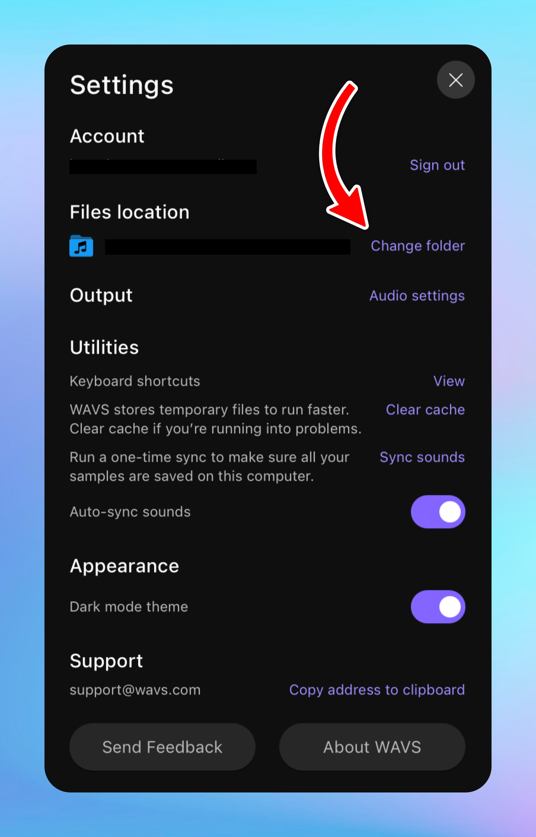 To access each sample's precise location, click the purple WAVS icon next to a sample in the App to open the Sounds folder.